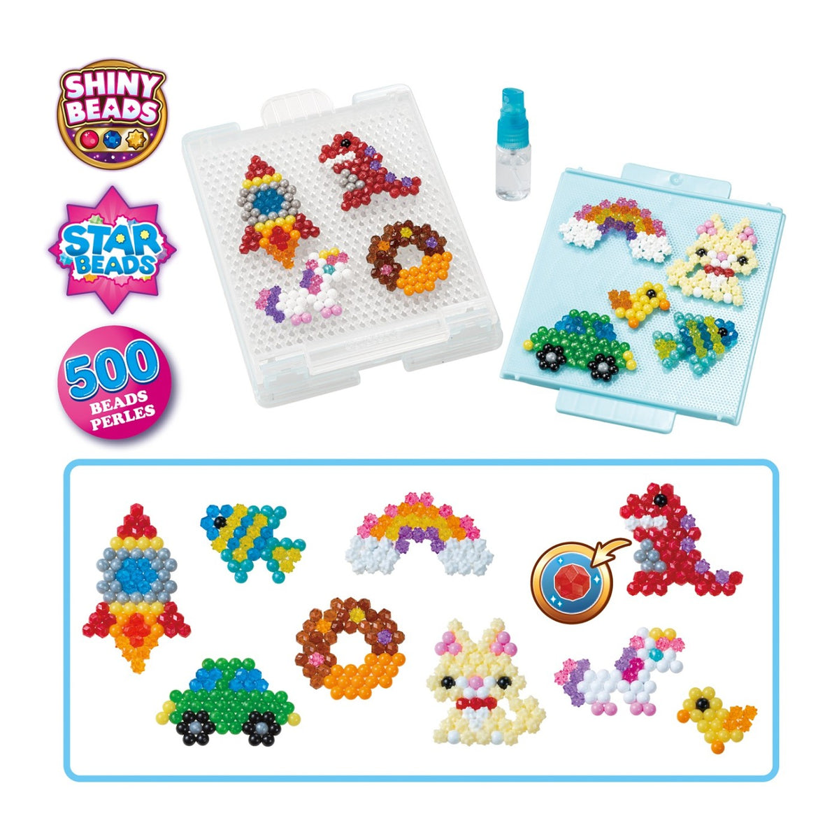 Aquabeads je originalni komplet za ustvarjanje z vodno aktiviranimi perlicami! Od leta 2004 so otroci po vsem svetu ustvarili milijone Aquabeads dizajnov. Začetni komplet vključuje 500 trdnih, draguljnih in zvezdnih perlic v 18 barvah, flip pladenj, razpršilo, predlogo in navodila – vse, kar potrebujete za začetek ustvarjanja z Aquabeads! Po predlogi postavite perlice na pladenj, da ustvarite svoj dizajn. Z razpršilom nanesite vodo na perlice, da se čarobno zlepijo skupaj! Z vključenim flip pladnjem lahko takoj odstranite svoje stvaritve in takoj začnete z novo. Igrajte se skupaj z drugimi popolnimi, tematskimi in dodatnimi seti iz linije Aquabeads. Primerno za otroke 4+ let.
