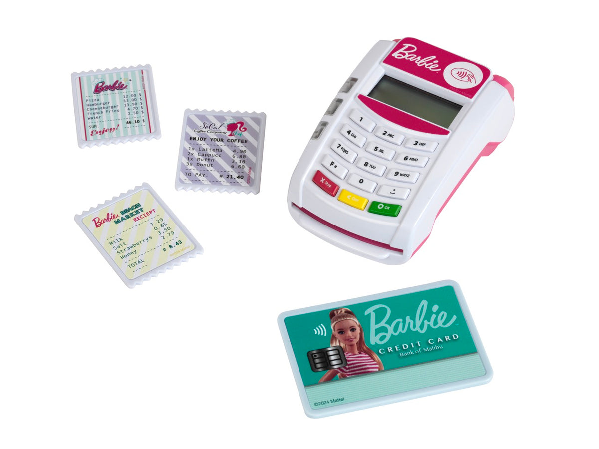Sodobni časi prevzemajo Barbiejev svet: s to plačilno terminalo v šik dizajnu Barbie lahko ljubitelji lutk vseh starosti zdaj nakupujejo s stilom, uporabljajoč kul kreditno kartico brez težav s tipkanjem kode ali PIN-a. Preprosto vklopijo igračo kartični bralnik in ko potegnejo kreditno kartico skozi režo ali držijo Barbie kartico nad znakom za brezstično plačevanje, sodobni terminal označi, da je kartica prebrana in sprejeta, s primernim zvokom. Nato izda potrdilo o nakupu, kot pravo račun iz blagajne. Tako spremeni otroško trgovino v šik Barbie butik.