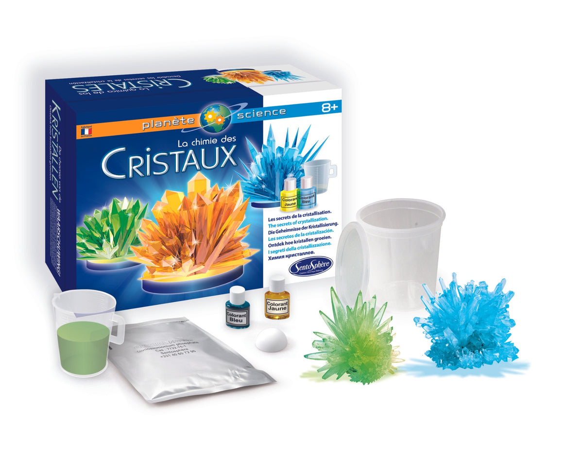 Moške je vedno fascinirala kristalnost zaradi njihove prozornosti in ostrih ter podrobnih vzorcev. S temi 2 vrečkami kristalnega prahu po 150 g vam bo ta komplet omogočil rast kristalov, ki se bodo pridružili vaši mineralni zbirki! Zahvaljujoč eksperimentom, prikazanim v tem kompletu, bodo vsi otroci razumeli pojav kristalizacije.