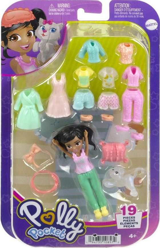 Pustite svojem slogu, da zasije z oblačili Polly Pocket™! Ta komplet vključuje čudovito temo igralke z 3-palčno lutko, 18 kosi oblačil in 1 hišnim ljubljenčkom! S toliko možnostmi oblačil in dodatkov je popoln za otroke, ki se radi izražajo skozi svoj edinstven modni slog! Zberite jih vse in kombinirajte obleke kamorkoli greste. Vsak modni paket se prodaja ločeno, odvisno od razpoložljivosti.
