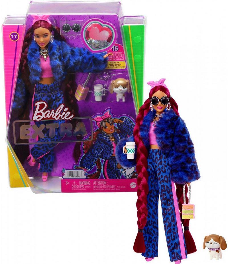 Barbie Extra lutke zasijejo v drznih modnih kombinacijah in svetlih barvah ter puščajo velik vtis! Vsaka Barbie lutka ima svoj edinstven slog, ki je igriv in pretiran. Tudi njihovi ljubljenčki, vsak drugačen in vsi ljubki, imajo ogromno osebnosti! Barbie Extra omogoča otrokom raziskovanje samoizražanja skozi stil in ponuja razburljivo modno igro z lutkami, ki se lahko postavijo v različne položaje. Vse je usmerjeno k zabavi z modo, z bleščicami, gummy medvedki, emojiji in izstopajočimi frizurami, ki prinašajo EXTRA vzdušje, kamor koli gredo. Vsaka se prodaja posebej, odvisno od razpoložljivosti. Lutke ne morejo stati same. Barve in okrasitve se lahko razlikujejo.
