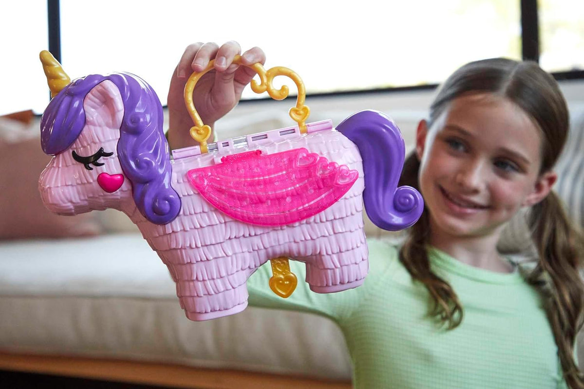- Najbolj zabavna 'presenečenje' zabava z igralnim setom Polly Pocket™ Unicorn Party! Zabava se začne tako, da povlečete jeziček in opazujete, kako iz igralnega seta pade barvni tok konfetov in več kot 25 presenečenj! Nekatera presenečenja so zavita za še večjo zabavo! Vau!