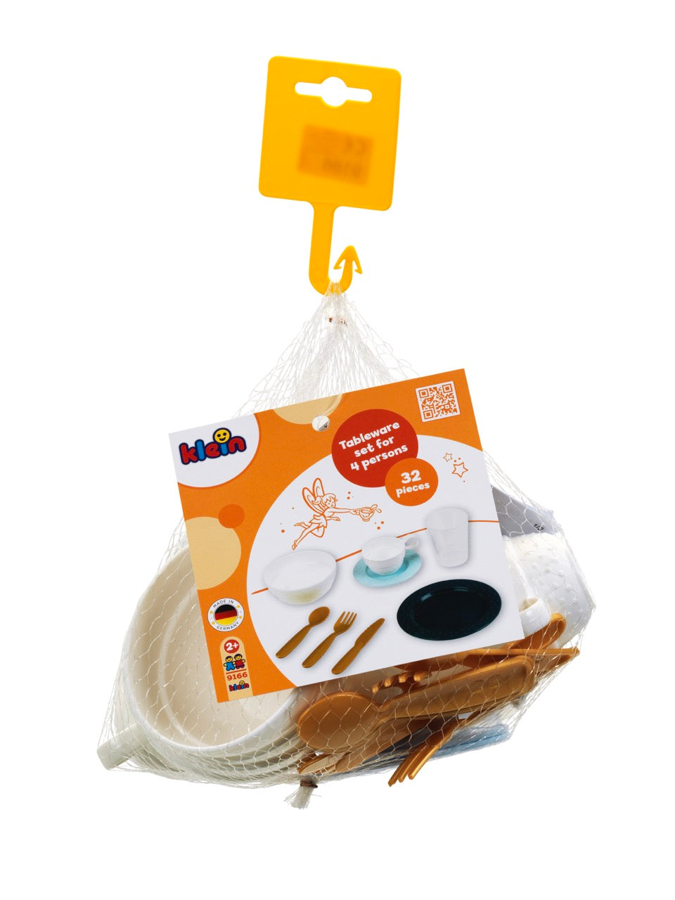 Visokokakovostna, belo-modra otroška posoda je izdelana v Nemčiji. Komplet vključuje 4 kozarce za pitje, 4 sklede za kosmiče, ki jih lahko uporabljate tudi kot sklede za splošno rabo, 4 večerje krožnike in 4 kavne sete, sestavljene iz skodelice in krožnika. Še posebej eleganten je z zlatim priborom za 4 osebe, vključno s vilicami, noži in žlicami.