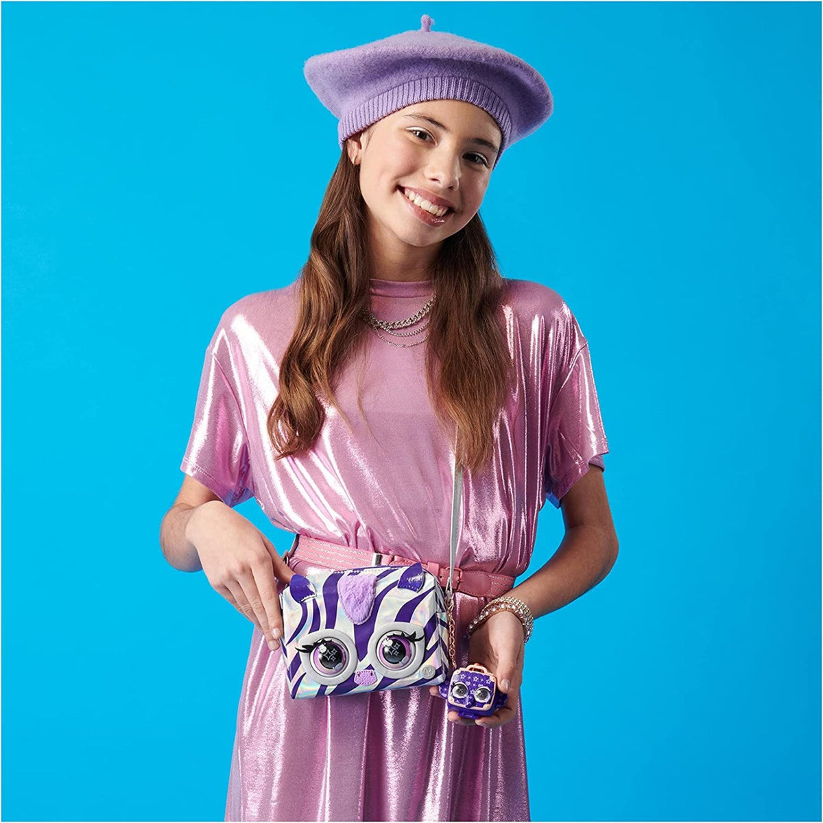 Cena na enoto ZaModa Nikoli Ni Bila Tako Živa! Purse Pets niso le torbice in niso le hišni ljubljenčki. So nepogrešljivi modni dodatki za male modne navdušence. Rebel Stripez se ponaša z bogato vijolično barvo in metalno zebro, oboje z očmi, navdihnjenimi z umetnostjo pop-art, metalno opremo ter nastavljivim trakom za nošenje čez ramo ali kot torbica čez telo. Purse Pets utripajo in oddajajo zapeljive zvoke med interakcijo z vami. Držite jih za čelo in utripali bodo hitro, pri tem pa boste slišali zvok, kot pri fotoaparatu. Pritisnite gumb s simbolom in odklenite več načinov igranja.