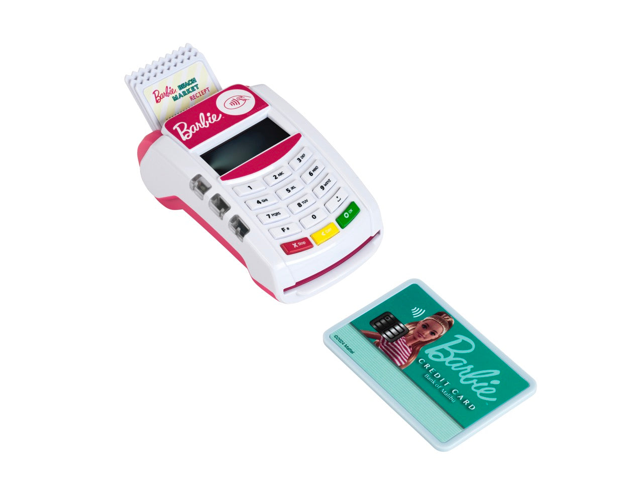 Sodobni časi prevzemajo Barbiejev svet: s to plačilno terminalo v šik dizajnu Barbie lahko ljubitelji lutk vseh starosti zdaj nakupujejo s stilom, uporabljajoč kul kreditno kartico brez težav s tipkanjem kode ali PIN-a. Preprosto vklopijo igračo kartični bralnik in ko potegnejo kreditno kartico skozi režo ali držijo Barbie kartico nad znakom za brezstično plačevanje, sodobni terminal označi, da je kartica prebrana in sprejeta, s primernim zvokom. Nato izda potrdilo o nakupu, kot pravo račun iz blagajne. Tako spremeni otroško trgovino v šik Barbie butik.