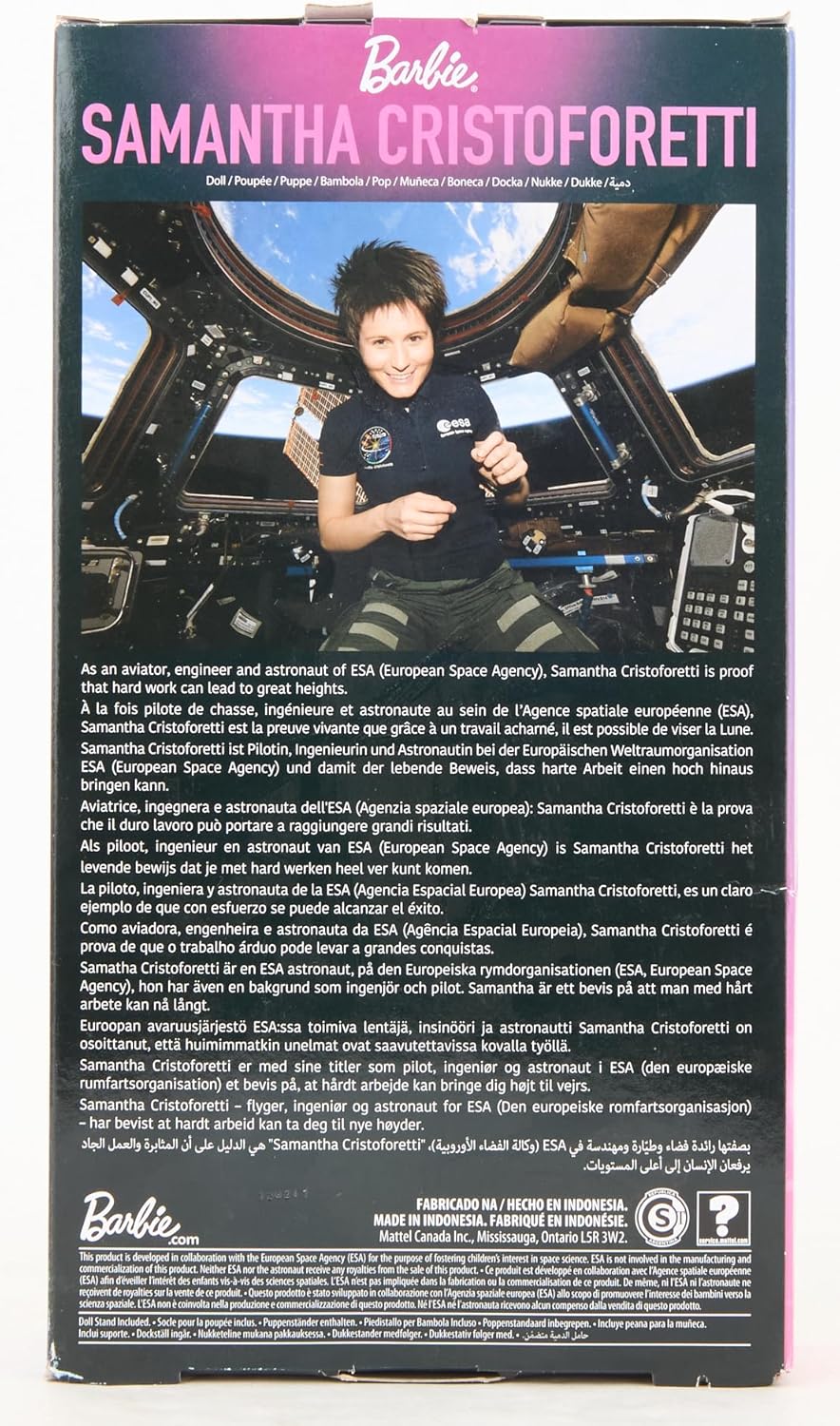 Barbie lutka Samantha Cristoforetti je odlično darilo za zbiratelje in otroke od 6. leta dalje, zlasti za tiste, ki jih zanimajo znanost in vesolje.