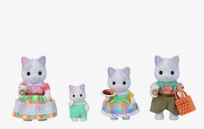 Vabimo vas v svet Sylvanian Families z našim setom - družino mačk Latte! Ta ljubek set vsebuje štiri figurice: mamo, očeta, hčerko in sinčka, vse oblečene v barvita in podrobno izdelana oblačila. Ustvarjene z največjo pozornostjo do podrobnosti, te simpatične mačke so popoln dodatek k zbirki vsakega ljubitelja Sylvanian. Vsaka postava je edinstvena in oblečena v individualno zasnovane kostume.