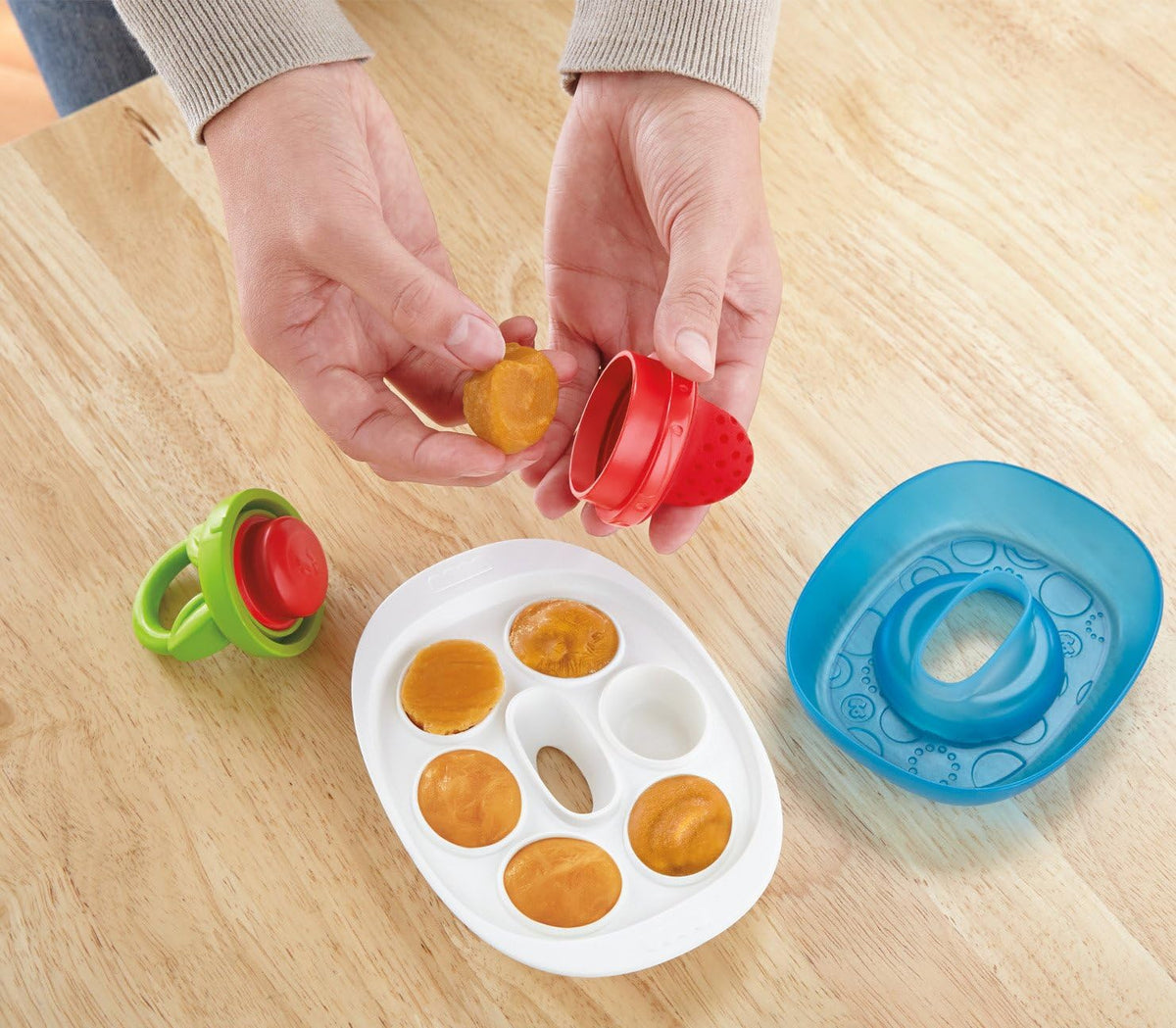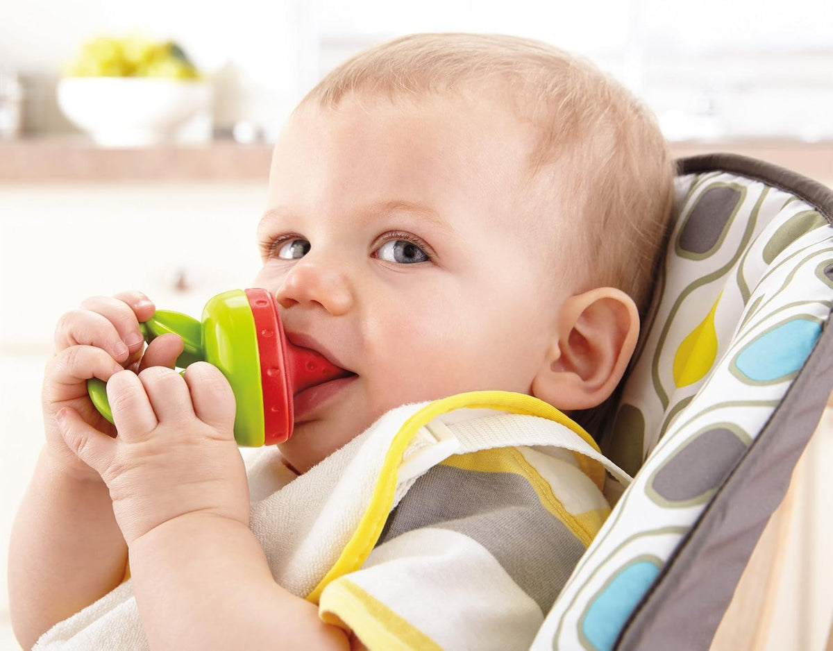 Nova linija izdelkov za hranjenje blagovne znamke Fisher Price z kakovostjo, ki ji lahko zaupate! V novi liniji za hranjenje blagovne znamke Fisher Price so na voljo izdelki, kot so: sklede s kompletom jedilnega pribora, žlice in vilice v dveh modelih, ter proti kapljici skodelice za otroke od 6 mesecev in za starejše od 12 mesecev. Linija se odlikuje z najvišjo kakovostjo uporabljenih materialov ter ergonomskimi rešitvami in dizajnom, ki omogočajo otroku, da se nauči jesti samostojno. Fisher Price Zobni grizalec Zmrznjena Sladka palčka za zobe 6m+ Y9842 Edinstven grizalec sladkarija bo pomagal mami in malčku v obdobju zobe. Malček ga lahko uživa tudi kot okusno prigrizek čez dan. Možnost zamrznitve najljubšega sokovca ali hrane v predelkih, namenjenih temu. Zamrznjen vložek preprosto postavite v sladkarijo in ga ponudite malčku. Malček ga bo z veseljem sesal, hkrati pa pomagal ublažiti bolečino dlesni v času rasti zob. Enostaven za čiščenje, estetski in trpežen. Izdelan iz varnih materialov. Prednosti: Mehka, silikonska površina grizalca ublaži bolečine dlesni, varen za malčka, trpežen in enostaven za čiščenje, pladenj s predelki omogoča zamrzovanje 8 vložkov za sladkarijo iz sokov, vode ali najljubše hrane, na vrhu pladnja prostor za shranjevanje grizalca, enostaven za shranjevanje. Starost otroka: od 6 mesecev.