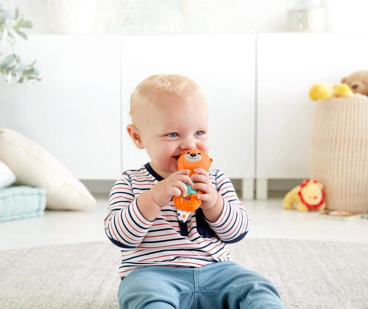 Zabavajte se ob igranju z Fisher-Price® Hungry Otter Rattle. Ta ljubek igralniček ima mehak glavo in rep ter barvite "ribe" v prozorni trebušček. Ko vaš dojenček prime in stresuje svojega ježka prijatelja, bodo videli, kako se ribe premikajo znotraj!