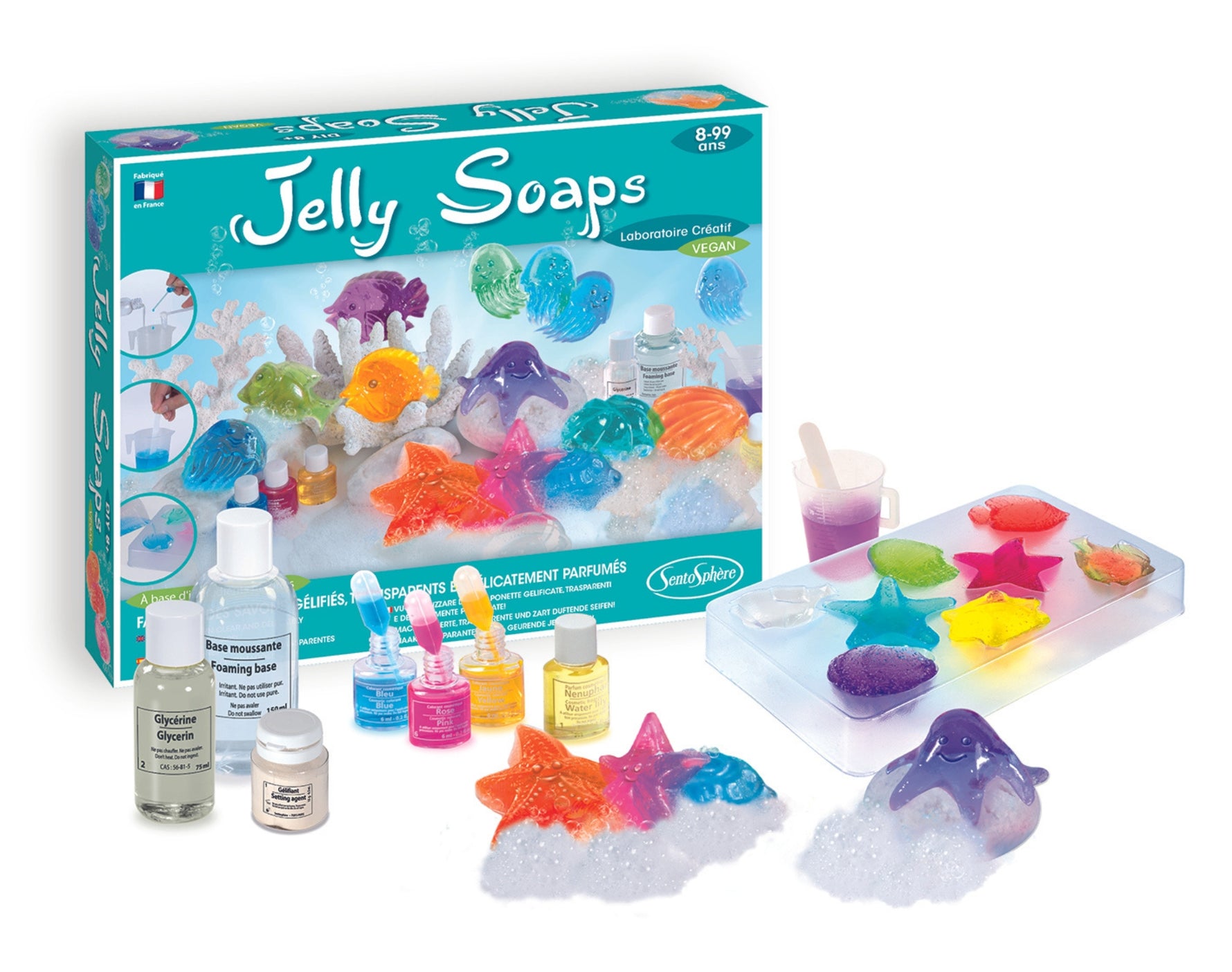 S tem kompletom lahko ustvarite do 12 prikupnih in pisanih hobotnic, meduz, ribic ter morskih zvezd, ki bodo kopanje spremenile v pravo zabavo! Priložena je tudi škatlica za enostavno prenašanje žele mil na poti.