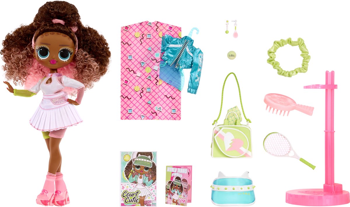 Spoznajte L.O.L. Surprise! O.M.G. Sports-modno punčko iz serije 3: tukaj je Court Cutie! Court Cutie je svetovna teniška zvezda, ki je odlična v teku in serviranju!