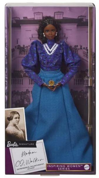 Serija Barbie Inspiring Women časti neverjetne junakinje njihovega časa: pogumne ženske, ki so tvegale, spreminjale pravila in utrle pot generacijam deklet, da sanjajo več kot kadarkoli prej. Madam C. J. Walker, rojena Sarah Breedlove leta 1867 na plantaži bombaža v Delti, Louisiana, je bila hči staršev, ki so bili prej sužnji in postali najemni kmetje. Walkerjeva je postala uspešna podjetnica in prva dokumentirana samostojna milijonarka v ZDA. Barbie počasti njeno neomajno odločnost s kolekcionarsko lutko, oblikovano po njenem liku. Lutka vključuje tudi dodatek 'Madam C.J. Walker's Wonderful Hair Grower'. Barbie lutka Madam C.J. Walker bo čudovit dodatek vsakemu zbirateljstvu. Vključena sta stojalo za lutko in Potrdilo o avtentičnosti. Lutka ne more stati samostojno.