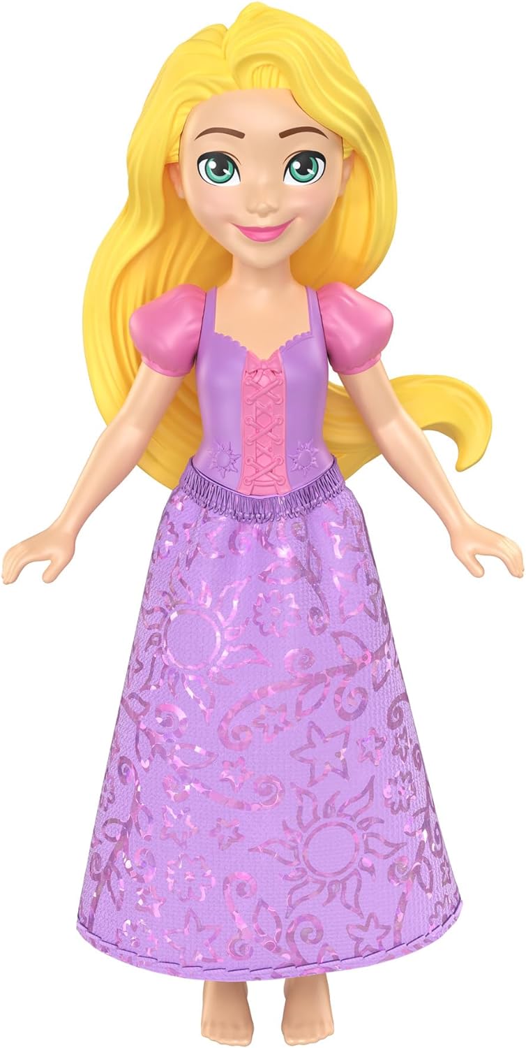 Po navdihu animiranega lika iz priljubljenega Disneyjevega filma Tangled je ta majhna punčka Rapunzel pripravljena najti svoje sanje! V čudoviti majhni velikosti Rapunzel nosi svoj značilni videz iz filma z oblikovanim zgornjim delom in odstranljivim mehkim krilom.