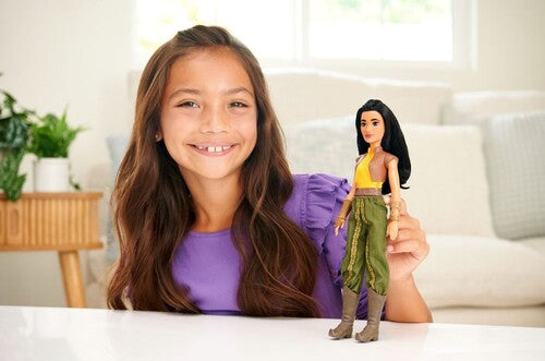 Spoznajte to lutko Raya, navdihnjeno po odločnem in neustrašnem bojevniku iz Disneyjevega filma Raya and the Last Dragon. Ta pozicijska modna lutka je oblečena v pristno obleko in dodatke, vključno z škornji in zapestnicami. V svojem značilnem videzu iz filma je lutka Raya pripravljena na vsako avanturo! Lutka ne more stati sama. Barve in dekoracije se lahko razlikujejo.