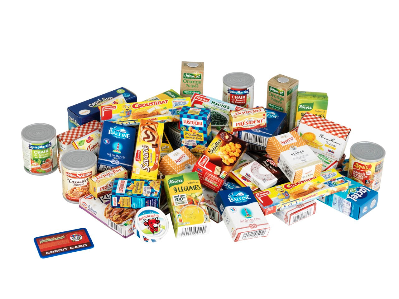 Ta obsežen komplet vsebuje barvito mešanico številnih škatel s francoskimi blagovnimi znamkami izdelkov.